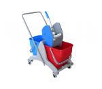 Carro escurridor de 30 lt con 2 baldes de 15 lt separados en azul y rojo. Unidad